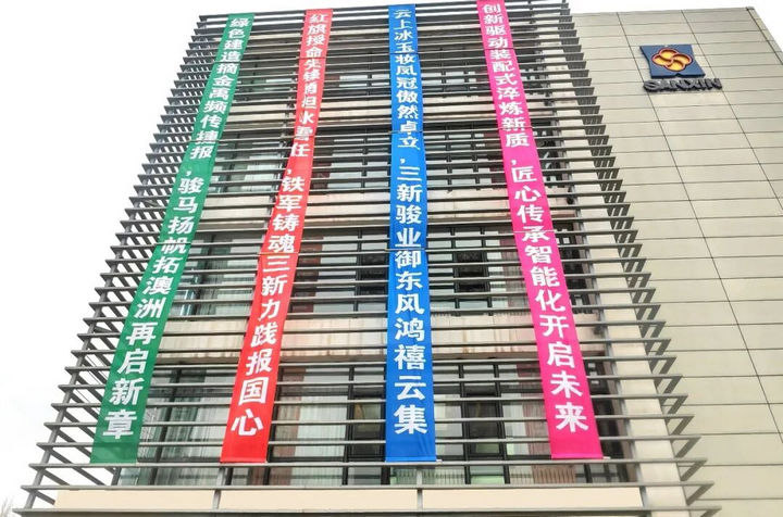 The huge couplets hanging on the open curtain wall of the office building are particularly eye-catching, like ancient-style battle flags, majestic and fluttering, with every word and line depicting the grand narrative and extraordinary excellence of Sanxin in 2025. The rows of flags, like the grand ceremonies of the prosperous Tang Dynasty, unfold the long scroll of struggle for 2025, engraving the main theme of "innovation-led, building new competitive strength" into every inch of the flickering light and shadow and the passionate original aspiration. All Sanxin people gather together, with the flags as witnesses, to recall the extraordinary past and move forward together towards a new journey. The flags guide the passing years, and the aspirations for the year are clearly manifest.